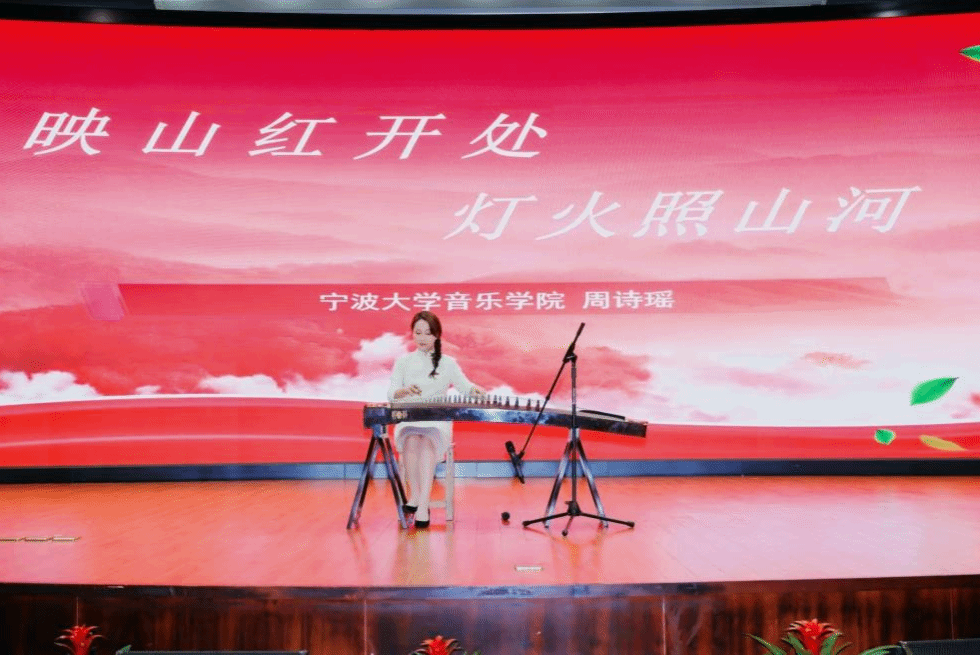 4月2日,宁波大学2026年“新时代真理的味道·宁大潮音”思政微课公开巡讲活动在真诚图书馆报告厅举行。我院青年古筝教师周诗瑶凭借作品《映山红开处,灯火照山河》脱颖而出,荣获特等奖并受邀公开巡讲,以音乐为桥,奏响思政与艺术交融的动人乐章。