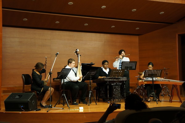 据悉,在音乐会上演奏的五位交流学生来自美国特拉华州立大学,他们来我院主要学习中国民族乐器。五位留学生根据自身特点和兴趣选择了二胡、琵琶、竹笛等民族乐器。我院在给这些学生安排对口的专业老师和琴房的同时,还特意配备了专业学生做他们的指导。在师生的共同努力下,通过近一个月的学习,这些交流学生已经能够掌握简谱的识读,并能演奏相应乐器的初级乐曲。在音乐会上演奏的《茉莉花》和《梁山伯与祝英台》,就是他们学习成果的汇报展示。(钟青、廖松清)