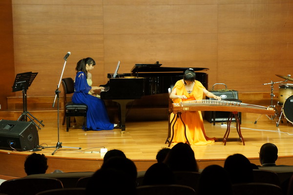 音乐会在美国特拉华州立大学教授、小号演奏家帕特里克·霍夫曼和我院音乐系教师邵立群的小号与钢琴二重奏中拉开序幕,高亢嘹亮的小号演绎了俄罗斯作曲家亚历山大·季迪科的《音乐会练习曲》、中国乐曲《庆丰收》、奥地利作曲家海顿的《吉普赛回旋曲》等三个不同国度的音乐。我院音乐系学生用琵琶、古筝、钢琴演奏了巴赫的《二部创意曲》、日本民谣改编曲《樱花》、中国古曲《云裳颂》和《春江花月夜》。随后,我院美籍教师汤姆.史密斯和帕特里克·霍夫曼教授又共同演奏了爵士二重奏《带我飞向月球》。最后,音乐会在五位美国交流学生的器乐合奏曲《茉莉花》和《梁山伯与祝英台》的乐声中圆满结束。这是一场用音乐沟通不同文化背景下的人们心灵的盛会,琴声感染了每一位中外师生。亨利·威廉姆斯校长听完音乐会后激动万分,久久地同我院师生一起交谈。