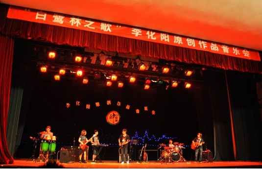 乐队当晚共演出12首佳作,均为我院09音乐李化阳同学的原创作品。其中包括流行歌曲《我们的世界》、《你》、《停留》 ,校园歌曲《一语青春》、《高三没有星期天》、《一路》,小提琴曲《秋叶》、二胡曲《无词歌》及情景剧式音乐小品《如果我还能遇见你》、《流浪者的故乡》,得到了现场观众的一致好评。最后的返场曲目《西木子》,更是给音乐会画上了圆满的句号。